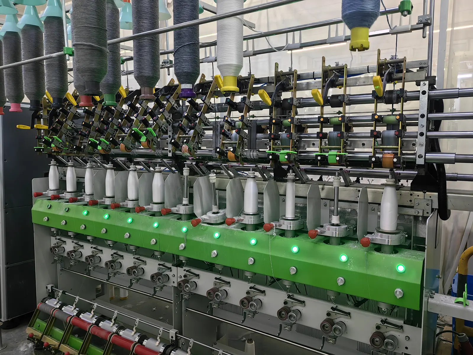 Each spindle independently controlled for precise speed and tension adjustment.