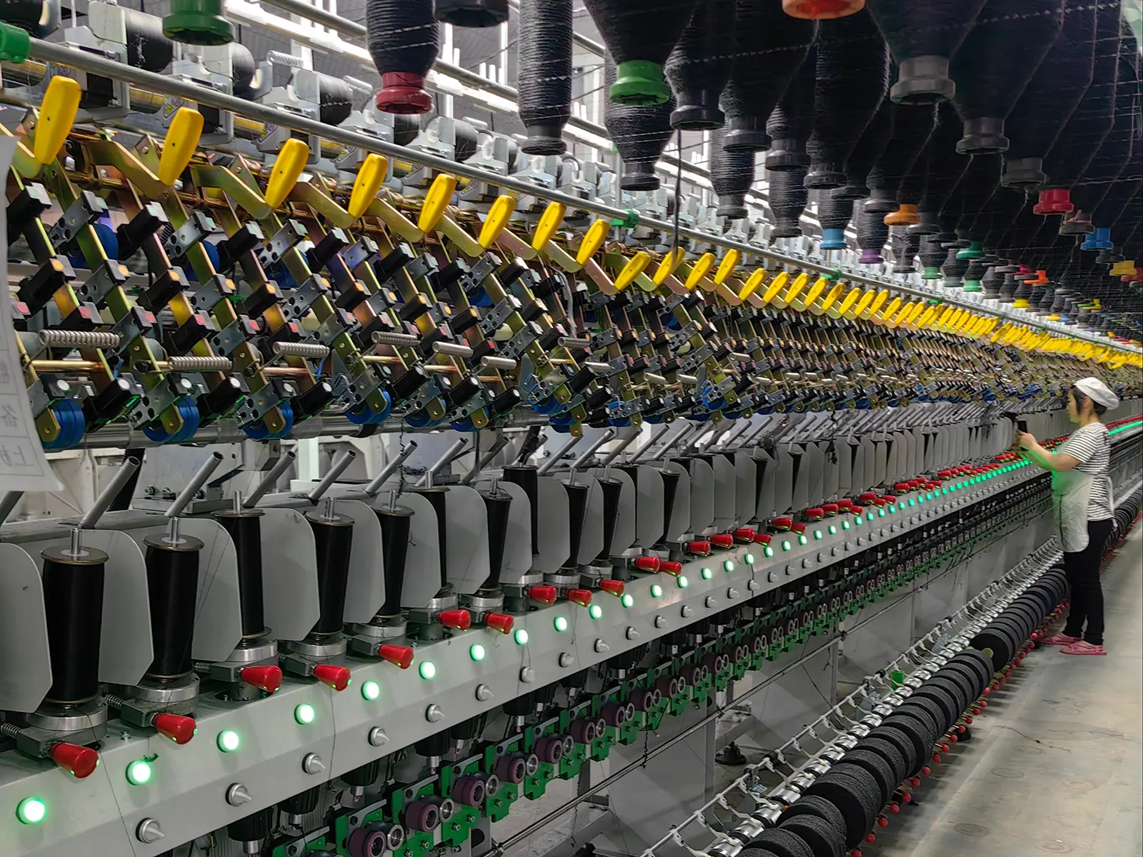 The machine adopts a single-color or double-color roving feeding system, ensuring stable and efficient fancy yarn production. Equipped with fluted tube winding and composite spindle technology, it guarantees smooth yarn formation and high consistency. Each spindle is independently servo-driven, allowing precise control of speed and tension. With a PLC-based control system and touchscreen panel, operators can easily set process parameters, store recipes, and switch production quickly to meet diverse yarn requirements.